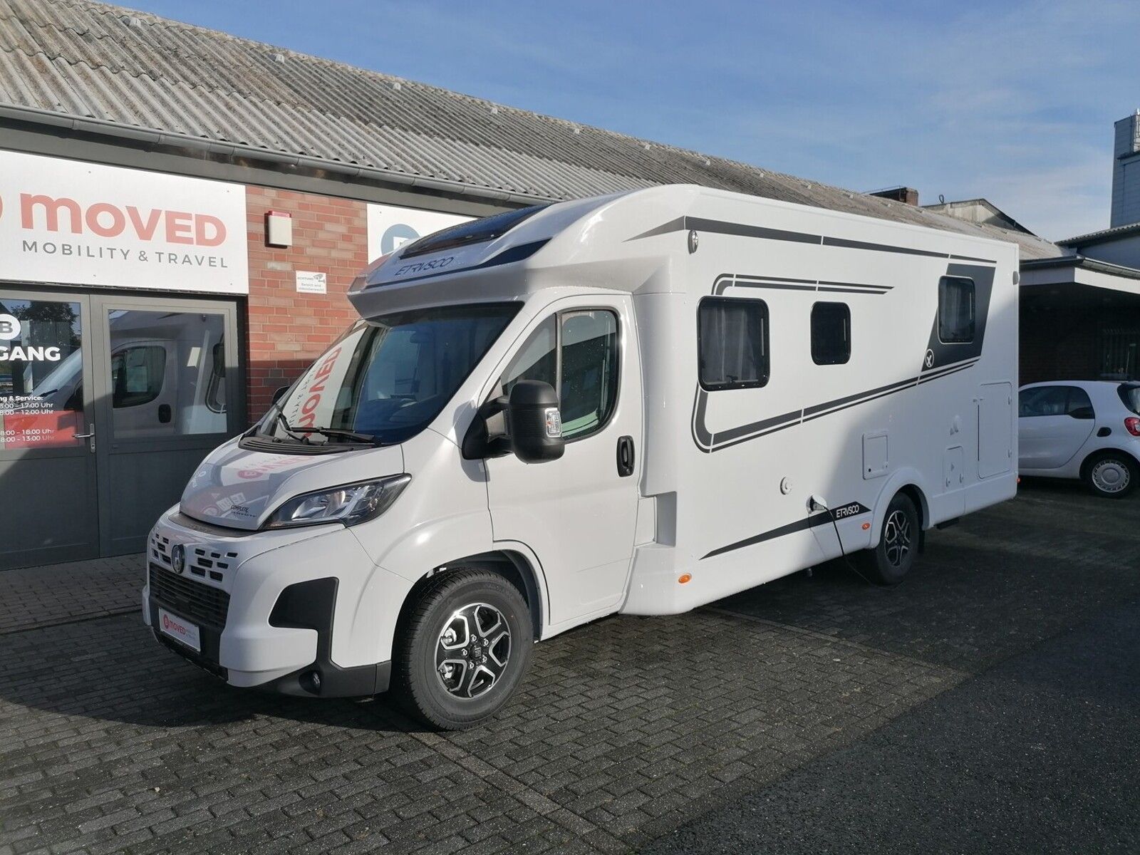 Fiat Ducato 2,2 l Multi-Jet - 132 kW | 180 PS - Automatikgetriebe (Heavy Chassis), FIAT Ducato Heavy Chassis 4.400 kg nur in Verbindung mit 180 PS, Complete Selection (Komfort Paket, Design Paket type X, Multimedia Paket Compact, Rahmenfenster, Fenster in T-Haube, Design Applikation Heck, Abwassertank isoliert, Vorbereitung Solaranlage, Vorbereitung Dachklimaanlage, Vorbereitungen für TV Kabel 12V und TV Halterung, Vorbereitung für Rückfahrkamera, Wohnwelt Emilia), Markise (manuell), 4,5 m, Gehäuse in anthrazit, Faltverdunklung für Fahrerhaus, Bettenumbau Sitzgruppe (Einzelbett), inkl. Applecarplay-Navigationsfunktion. (Navi SD-Karte gegen 249€ Aufpreis), Anhängerkupplung , Multifunktionslenkrad, Lederlenkrad, Radio, Radio DAB, Navigationssystem, Android Auto, Apple CarPlay, Allwetterreifen, Zentralverriegelung, Rückfahrkamera, Tempomat, Servolenkung, Separate Dusche, WC, GFK-Dach, Markise, Heckgarage