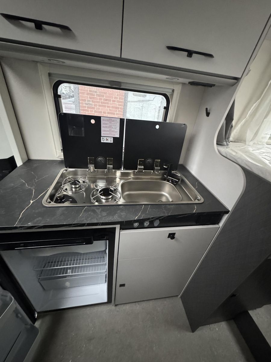 Modell 2026 Motor / Chassis: Ford Transit 2,0l TDCi Leistung: 121 kW / 165 PS Getriebe: Automatik zul. Gesamtgewicht: 3500 kg Bett(en): Einzelbetten