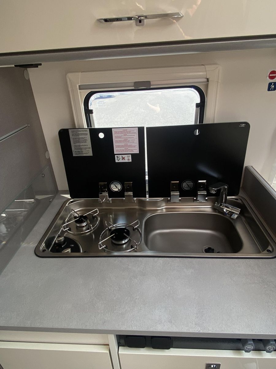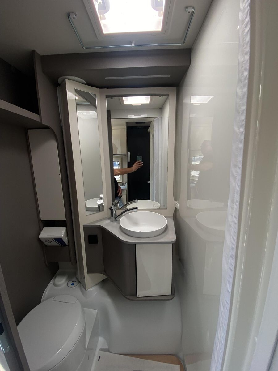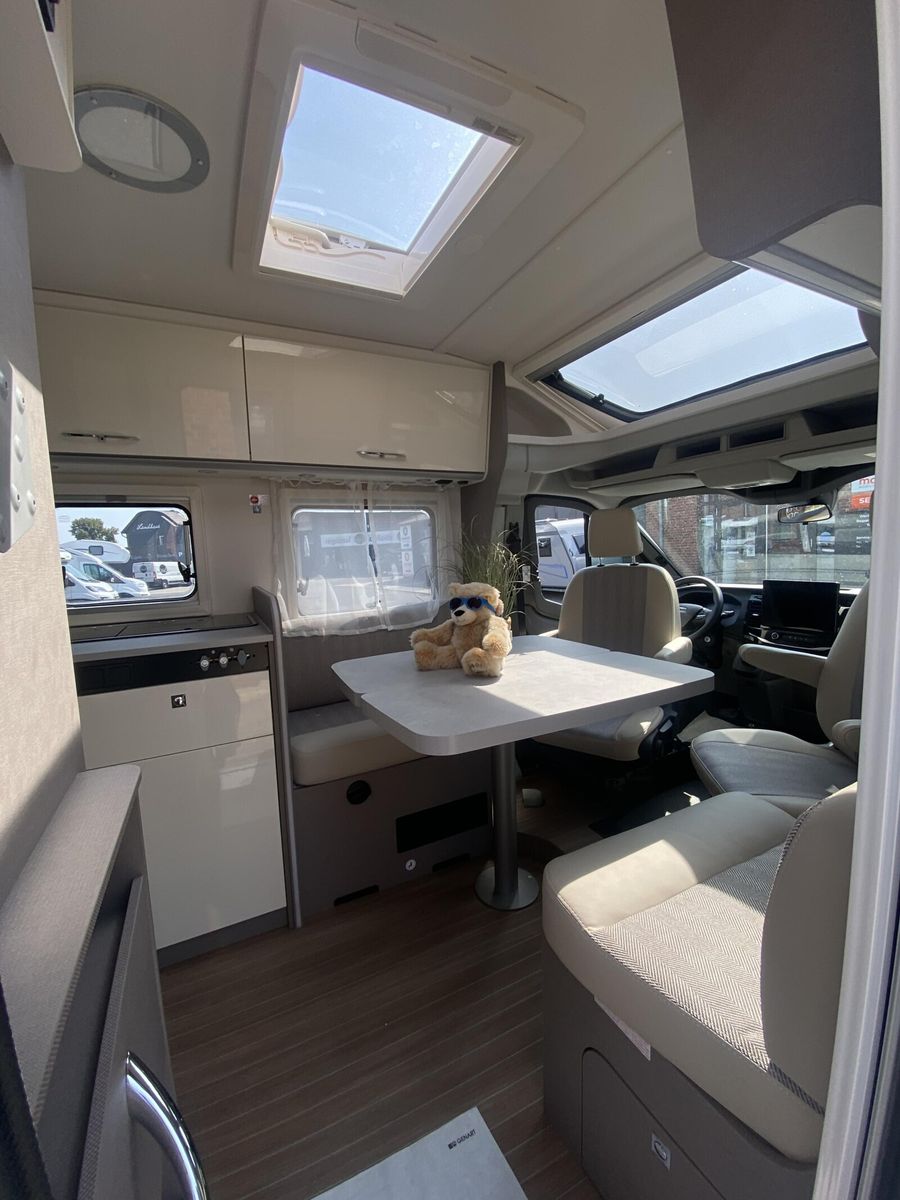 Modell 2025 Motor / Chassis: Ford Transit 2,0l TDCi Leistung: 121 kW / 165 PS Getriebe: Automatik zul. Gesamtgewicht: 3500 kg Bett(en): Einzelbetten Polster: Emilia (Type X) Holzdekor: Magnolia (type X)