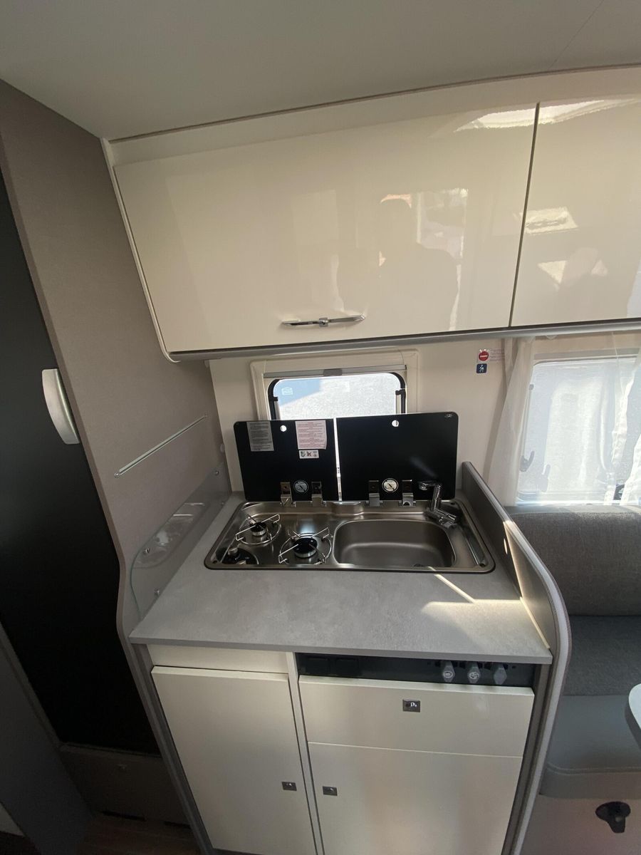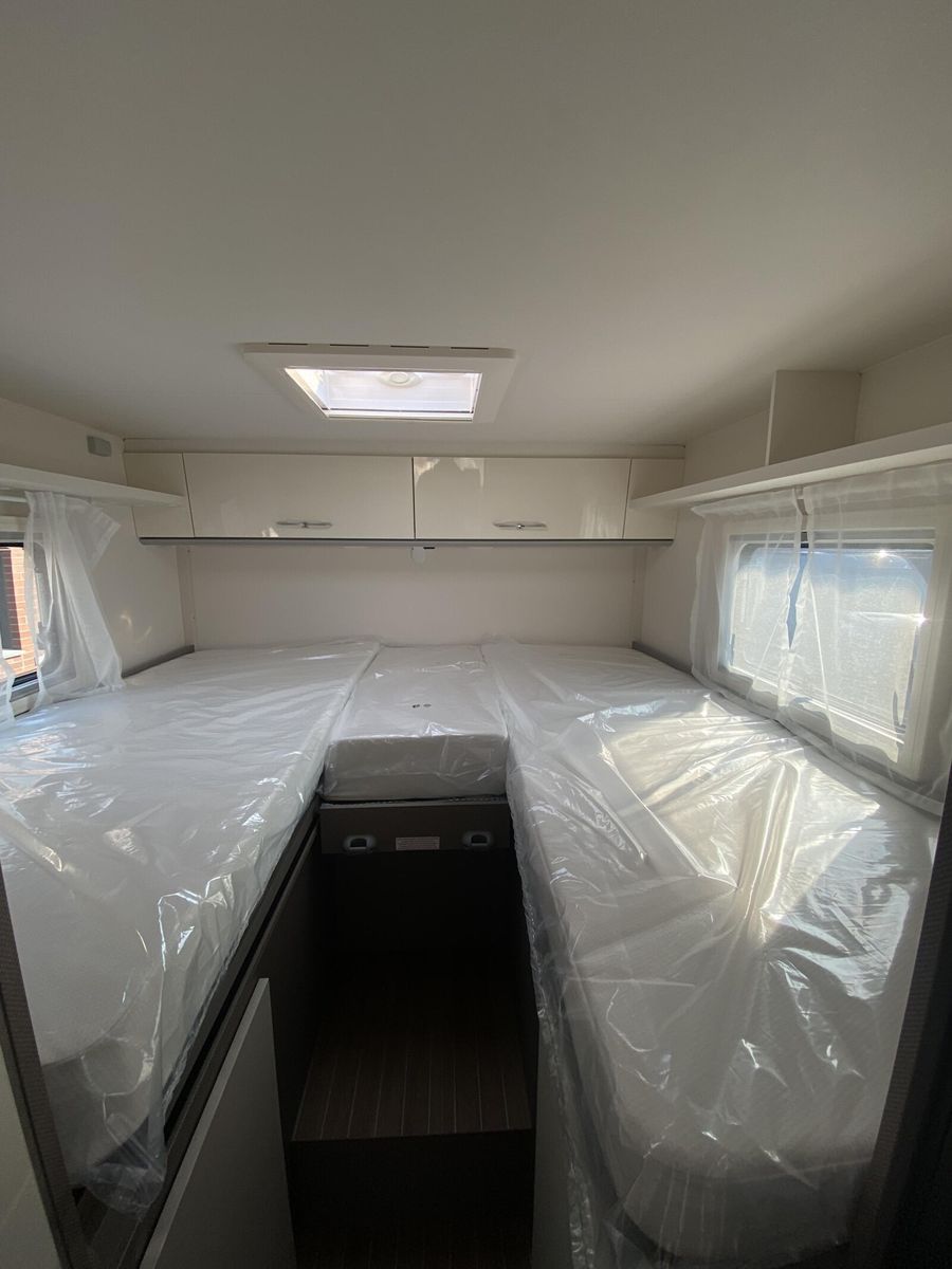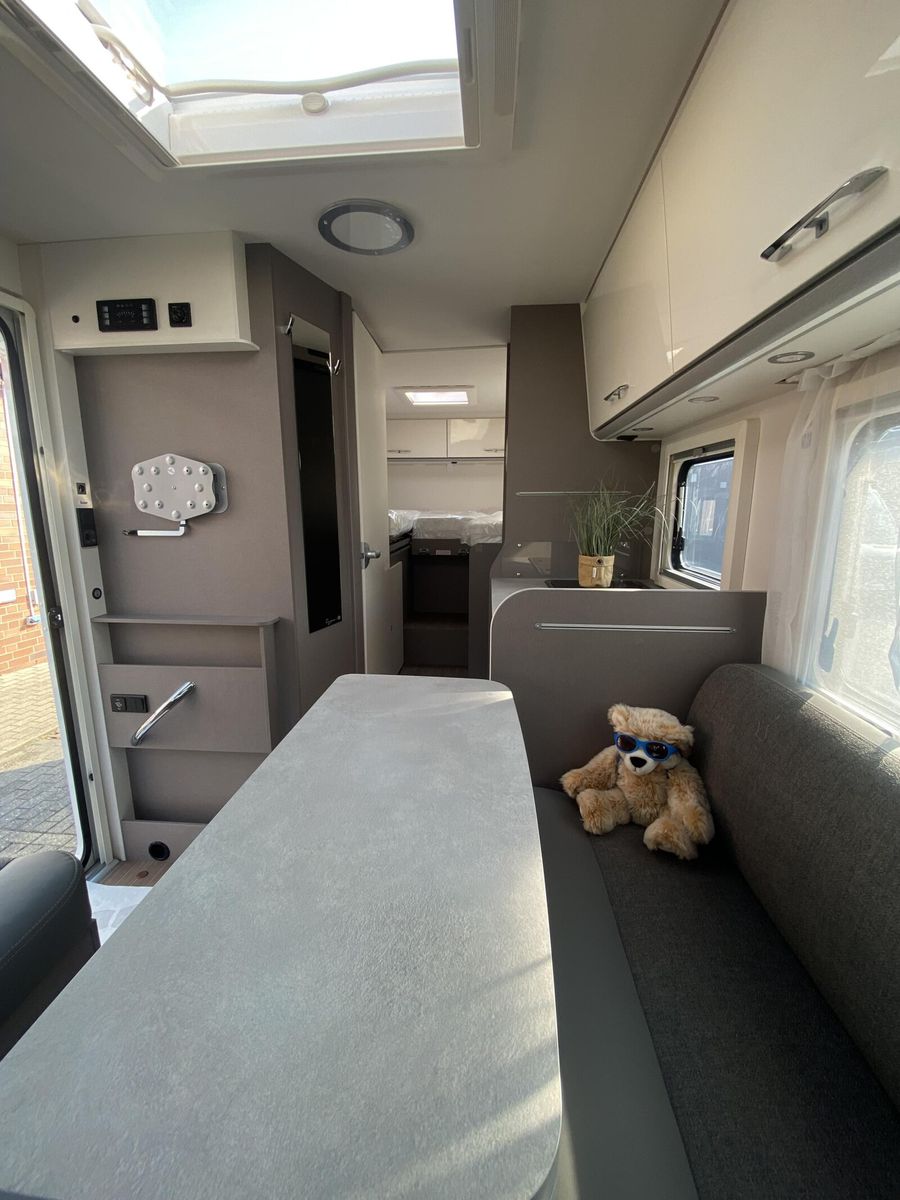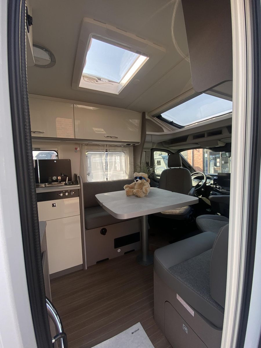 Modell 2025 Motor / Chassis: Ford Transit 2,0l TDCi Leistung: 121 kW / 165 PS Getriebe: Automatik zul. Gesamtgewicht: 3500 kg Bett(en): Einzelbetten