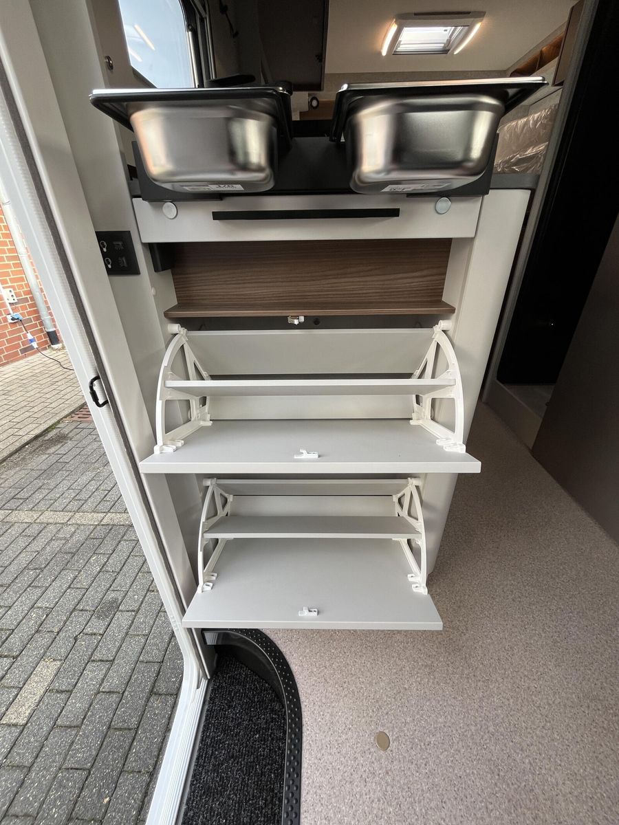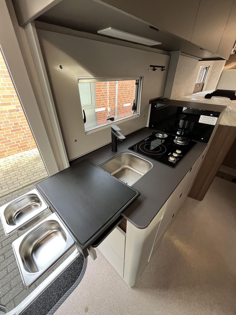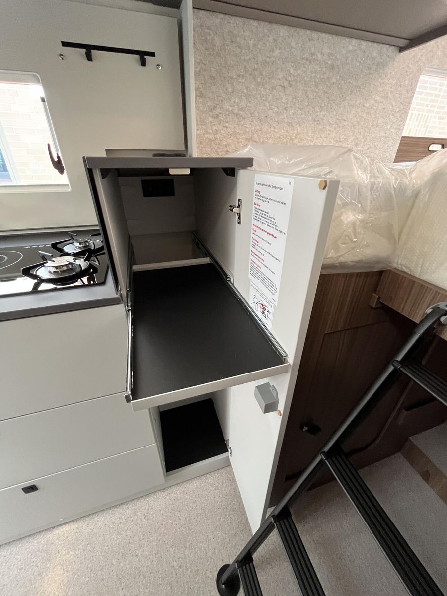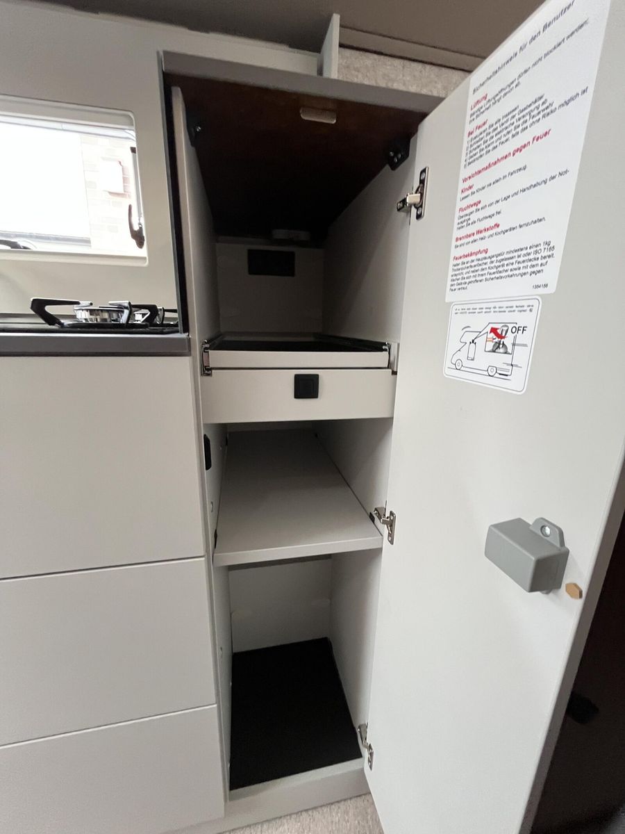 Serienausstattung Chassis & CockpitSkid Plate schwarz glänzendTraktionskontrolleASR + ESP inkl. BerganfahrassistentZentralverriegelungElektrische FensterheberFahrerairbagDieselpartikelfilterKlimaanlage manuell (Fahrerhaus)BordcomputerABS + ESPAußenspiegel verbreitertAdBlue Tank 19 lNebelscheinwerferServolenkungHalogenscheinwerferElektronische WegfahrsperreMultifunktionslenkrad mit Bedienelement16" Aluminiumfelgen schwarz mit AllwetterreifenElektrische FeststellbremseArmaturentafel mit Applikationen (Techno Trim)Außenspiegel elektrisch verstell- und beheizbarScheinwerfer mit schwarzem RahmenTempomatLenkrad und Schaltknauf in LederausführungKraftstofftank 90 l DieselFahrerhausverdunklung (Plissees)BeifahrerairbagLenkrad höhenverstellbarArmlehnen für Fahrer- und BeifahrersitzHöhenverstellung Fahrer- / BeifahrersitzPannensetSitzsockelverkleidung FahrerhausFahrer- / Beifahrersitz drehbarGetränkehalterKomfortfahrerhaussitzbezügeRückfahrkamera inkl. Kabelverlegung ohne MonitorStoßfänger in WagenfarbeRückfahrkamera in 3ter BremsleuchteDritte BremsleuchteAußenausstattungHeckabsenkung für erhöhte Nutzlast 250 kgAufbautür 70 cm mit Abfallsammler, Fenster, Verdunklungsrollo und Zentralverriegelung inkl. niedrigen Coupe EinstiegVorbereitung SAT, Klimaanlage, Solar inkl. DachverstärkungRahmenfenster inkl. Verdunklungsrollo und InsektenschutzDachhaube 280x280mm inkl. Verdunklungsrollo und Insektenschutz im BadDachhaube Klarglas 400x400mm inkl. Verdunklungsrollo und Insektenschutz über der SitzgruppeExtra großes Panoramafenster inkl. Verdunklungsrollo über FahrerhausHeckgaragentür Fahrer- und Beifahrerseite mit Einhandbedienung inkl. ZentralverriegelungAußenfarbe Expedition GreyMarkise matt Schwarz 4,5 x 2,50m inkl. LED-StreifenDachhaube Klarglas 400x400mm inkl. Verdunklungsrollo und Insektenschutz über dem SchlafbereichInnenausstattungKlappbare Wäschestange im Toilettenraum/DuscheSchuhschrank im EingangsbereichDuschwanneneinlage aus HolzBettenumbau Einzelbett zu Doppelbett3 Schubkästen mit Vollauszug im Bett BereichLounge L SitzgruppeVerstellbare Rückenlehne im BettbereichBeleuchtete Heckwand im BettbereichModulare Premium Matratze 150mm inkl. Tellerfeder LattenrostVariobad mit Schwenkwand zur DuschabtrennungPolster Cruiser Light StoneKleiderschrankinnenbeleuchtungInsektenschutztürMöbelbau und hinterlüftete Polster und Matratzen für optimale LuftzirkulationVerzurrschienen mit Verzurrösen in der HeckgarageKücheEinhängeleiste für optionales Zuebhör (Inkl. 2 Haken)Kombi-Kochfeld mit 1 Induktion und 2 Gas KochfeldernEingelassenes Spülbecken mit schwarzer ArmaturVollauszug für Haushaltsgeräte inkl. 230 V SteckdoseSäulentisch Absenkbar mit verschiebbarer TischplatteMultifunktionales Schneidbrett als Küchenerweiterung mit AbfallbehälternKompressorkühlschrank 132 l mit EisfachSchublade mit BesteckeinsatzSchubladen mit SoftcloseAnti-Rutsch-Matten in Küchenunter- und HängeschrankWasserversorgungAbwassertank 98 lFrischwassertank isoliert und beheiztWarmwassermischbatterieDruckwasserpumpeBank-ToiletteFrischwassertank 100 lMultimediaRadiovorbereitung inkl. Lautsprecher Aktiv-Antenne DAB fähigElektro- und GasversorgungGasabsperrhahn gut zugänglich und zentral angeordnet230V Steckdose und Beleuchtung in der HeckgarageIndirekte Beleuchtung KüchenrückwandIndirekte Beleuchtung oberhalb der HängeschränkeCEE-Anschluss in Heckgarage für 230 V mit mit FI-Schalter und LadegerätGasflaschenkasten (1x 11kg)RauchmelderDeckenbelechtung (dimmbar)Gasregler 30 mbar mit Gasschlauch (mit länderspezifischem Adapter)LED-InnenbeleuchtungIndividuell verstellbare LED-LesespotsAußentür GaskastenLeistungsstarke, wartungsfreie AGM-Aufbaubatterie (95 Ah)Elektrischer Ladeautomat für Aufbau- und Fahrzeugbatterie 12 V / 18 A mit LadeboosterLMC Home mit 4 DisplayHeizungDiesel Heizung 6 kW Umluft mit 10 l Boiler und digitalen BedienteilLong Life Technologie12 Jahre Aufbau DichtheitsgarantieGFK-Bug, -Dach und -HeckUnterboden aus Hochleistungs XPS-Schaum und GFKSA_Pakete_InhalteIndirekte Beleuchtung KüchenrückwandCockpitElektrische FeststellbremseTraktionskontrolleTempomatMultifunktionslenkrad mit BedienelementElektro- und GasversorgungIndirekte Beleuchtung KüchenrückwandFahrzeugausstattungBeifahrerairbagFenster & TürenRahmenfenster inkl. Verdunklungsrollo und InsektenschutzWeitere InnenausstattungenKlappbare Wäschestange im Toilettenraum/DuscheBettenumbau Einzelbett zu DoppelbettDuschwanneneinlage aus HolzIndirekte Beleuchtung oberhalb der HängeschränkeMarkise & FahrradträgerMarkise matt Schwarz 4,5 x 2,50m inkl. LED-Streifen