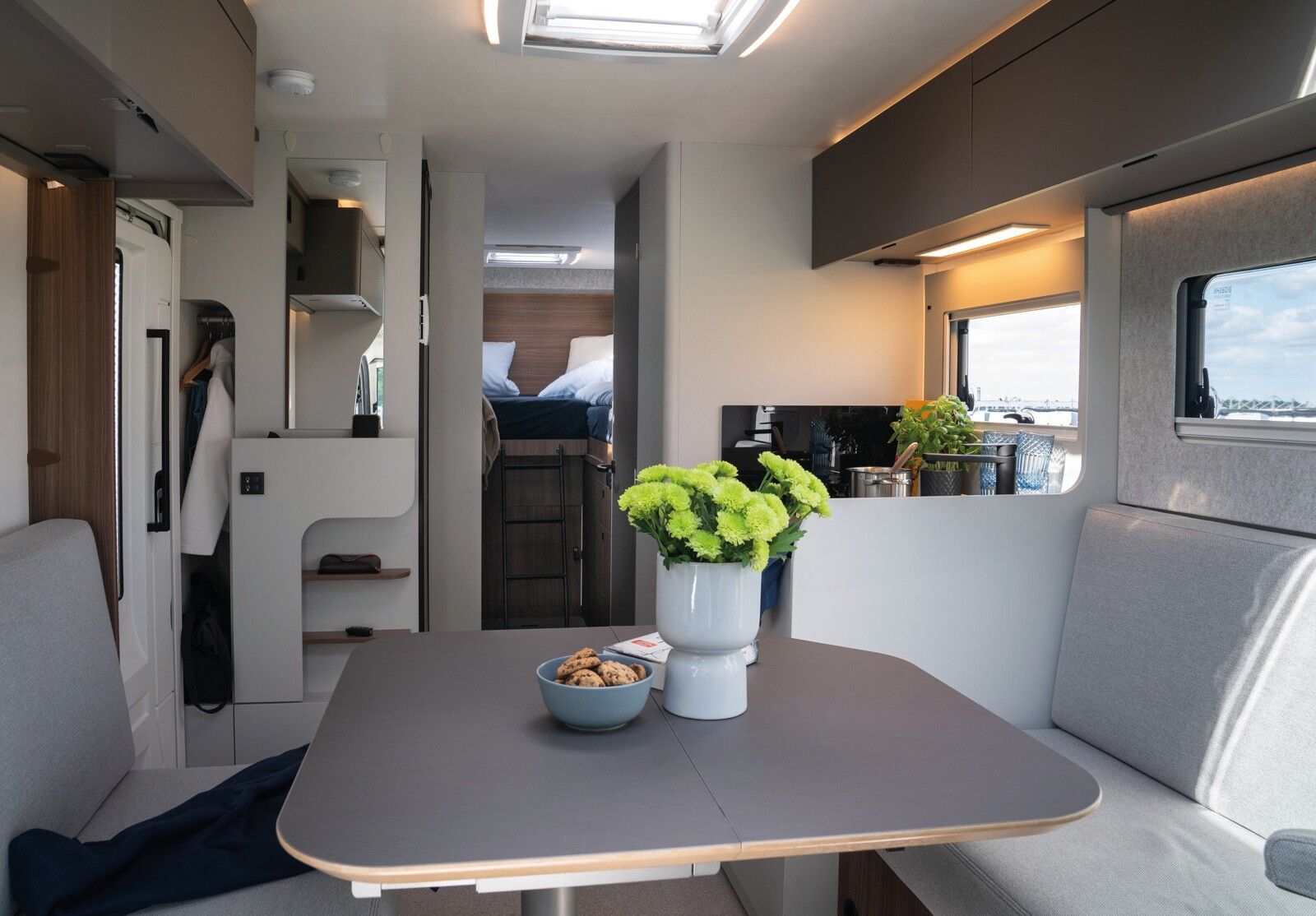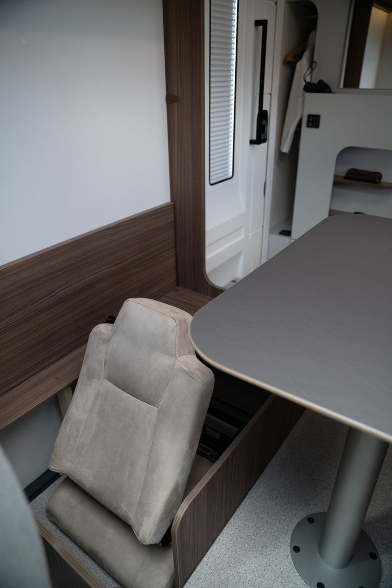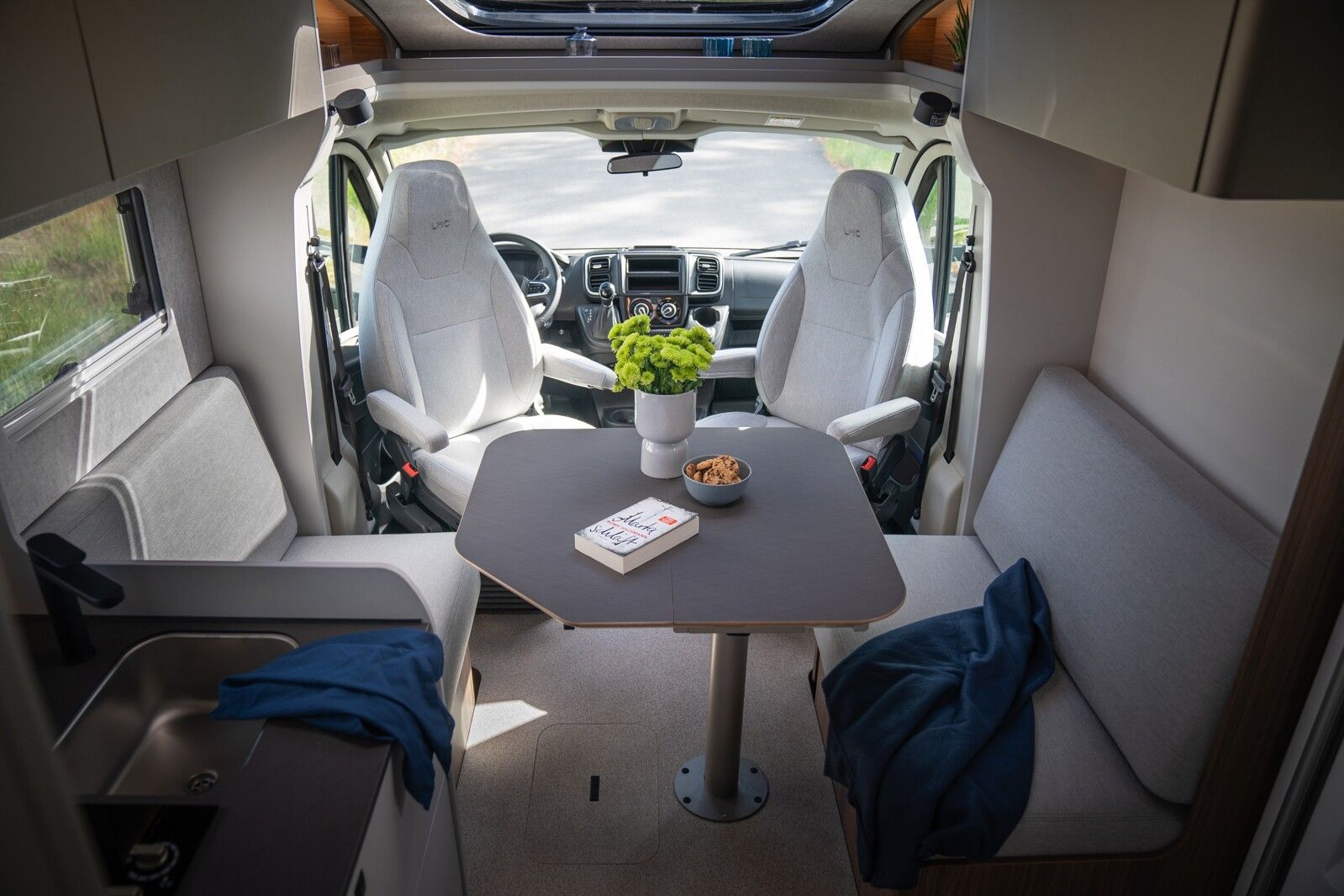 Chassis & CockpitSkid Plate schwarz glänzendTraktionskontrolleASR + ESP inkl. Berganfahrassistent Zentralverriegelung Elektrische Fensterheber Fahrerairbag Dieselpartikelfilter Klimaanlage manuell (Fahrerhaus) Bordcomputer ABS + ESP Außenspiegel verbreitert AdBlue Tank 19 l NebelscheinwerferServolenkungHalogenscheinwerferElektronische WegfahrsperreMultifunktionslenkrad mit Bedienelement16" Aluminiumfelgen schwarz mit Allwetterreifen Elektrische Feststellbremse Armaturentafel mit Applikationen (Techno Trim) Außenspiegel elektrisch verstell- und beheizbar Scheinwerfer mit schwarzem RahmenTempomat Lenkrad und Schaltknauf in Lederausführung Kraftstofftank 90 l Diesel Fahrerhausverdunklung (Plissees) Beifahrerairbag Lenkrad höhenverstellbar Armlehnen für Fahrer- und Beifahrersitz Höhenverstellung Fahrer- / Beifahrersitz Pannenset Sitzsockelverkleidung FahrerhausFahrer- / Beifahrersitz drehbarGetränkehalterKomfortfahrerhaussitzbezügeRückfahrkamera inkl. Kabelverlegung ohne MonitorStoßfänger in Wagenfarbe Rückfahrkamera in 3ter Bremsleuchte Dritte Bremsleuchte MotorvarianteFiat 103kW (140 PS) Schalter - EURO 6E inkl. Start & Stop Funktion und Booster Außenausstattung Heckabsenkung für erhöhte Nutzlast 250 kg Aufbautür 70 cm mit Abfallsammler, Fenster, Verdunklungsrollo und Zentralverriegelung inkl. niedrigen Coupe Einstieg Vorbereitung SAT, Klimaanlage, Solar inkl. Dachverstärkung Rahmenfenster inkl. Verdunklungsrollo und Insektenschutz Dachhaube 280x280mm inkl. Verdunklungsrollo und Insektenschutz im Bad Dachhaube Klarglas 400x400mm inkl. Verdunklungsrollo und Insektenschutz über der Sitzgruppe Extra großes Panoramafenster inkl. Verdunklungsrollo über FahrerhausHeckgaragentür Fahrer- und Beifahrerseite mit Einhandbedienung inkl. Zentralverriegelung Außenfarbe Expedition GreyMarkise matt Schwarz 4,5 x 2,50m inkl. LED-StreifenDachhaube Klarglas 400x400mm inkl. Verdunklungsrollo und Insektenschutz über dem SchlafbereichInnenausstattung Klappbare Wäschestange im Toilettenraum/DuscheBettenumbau Einzelbett zu Doppelbett 3 Schubkästen mit Vollauszug im Bett Bereich Garderobe im Eingangsbereich Separate Dusche durch Raumbad Verstellbare Rückenlehne im Bettbereich Beleuchtete Heckwand im Bettbereich Modulare Premium Matratze 150mm inkl. Tellerfeder Lattenrost Face to Face Sitzgruppe Polster Cruiser Light StoneKleiderschrankinnenbeleuchtung Insektenschutztür Möbelbau und hinterlüftete Polster und Matratzen für optimale Luftzirkulation Verzurrschienen mit Verzurrösen in der HeckgarageKüche Einhängeleiste für optionales Zuebhör (Inkl. 2 Haken) Kombi-Kochfeld mit 1 Induktion und 2 Gas Kochfeldern Eingelassenes Spülbecken mit schwarzer Armatur Säulentisch Absenkbar mit verschiebbarer TischplatteKompressorkühlschrank 132 l mit EisfachSchublade mit BesteckeinsatzSchubladen mit Softclose Anti-Rutsch-Matten in Küchenunter- und HängeschrankWasserversorgung Abwassertank 98 lFrischwassertank isoliert und beheiztWarmwassermischbatterieKasetten-Toilette Druckwasserpumpe Frischwassertank 100 lMultimedia Radiovorbereitung inkl. Lautsprecher Aktiv-Antenne DAB fähig Elektro- und Gasversorgung Gasabsperrhahn gut zugänglich und zentral angeordnet230V Steckdose und Beleuchtung in der HeckgarageIndirekte Beleuchtung KüchenrückwandIndirekte Beleuchtung oberhalb der Hängeschränke CEE-Anschluss in Heckgarage für 230 V mit mit FI-Schalter und LadegerätGasflaschenkasten (1x 11kg) Rauchmelder Deckenbelechtung (dimmbar) Gasregler 30 mbar mit Gasschlauch (mit länderspezifischem Adapter) LED-InnenbeleuchtungIndividuell verstellbare LED-Lesespots Außentür GaskastenLeistungsstarke, wartungsfreie AGM-Aufbaubatterie (95 Ah)Elektrischer Ladeautomat für Aufbau- und Fahrzeugbatterie 12 V / 18 A mit LadeboosterLMC Home mit 4 DisplayHeizungDiesel Heizung 6 kW Umluft mit 10 l Boiler und digitalen BedienteilLong Life Technologie 12 Jahre Aufbau Dichtheitsgarantie GFK-Bug, -Dach und -HeckUnterboden aus Hochleistungs XPS-Schaum und GFKSA_Pakete_InhalteIndirekte Beleuchtung Küchenrückwand CockpitElektrische Feststellbremse Traktionskontrolle Tempomat Multifunktionslenkrad mit Bedienelement Elektro- und GasversorgungIndirekte Beleuchtung Küchenrückwand Fahrzeugausstattung Beifahrerairbag Fenster & Türen Rahmenfenster inkl. Verdunklungsrollo und Insektenschutz Weitere Innenausstattungen Klappbare Wäschestange im Toilettenraum/Dusche Bettenumbau Einzelbett zu DoppelbettIndirekte Beleuchtung oberhalb der HängeschränkeMarkise & Fahrradträger Markise matt Schwarz 4,5 x 2,50m inkl. LED-Streifen