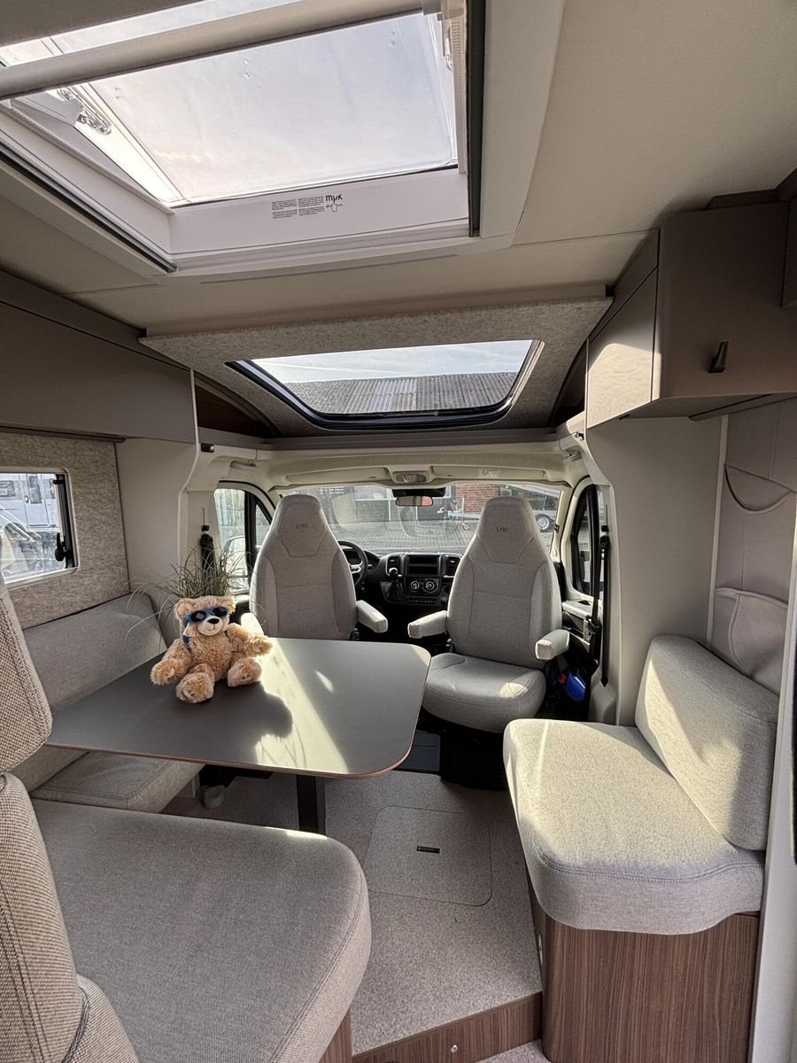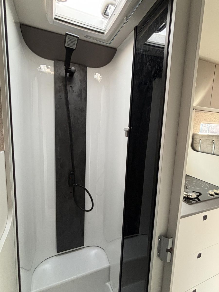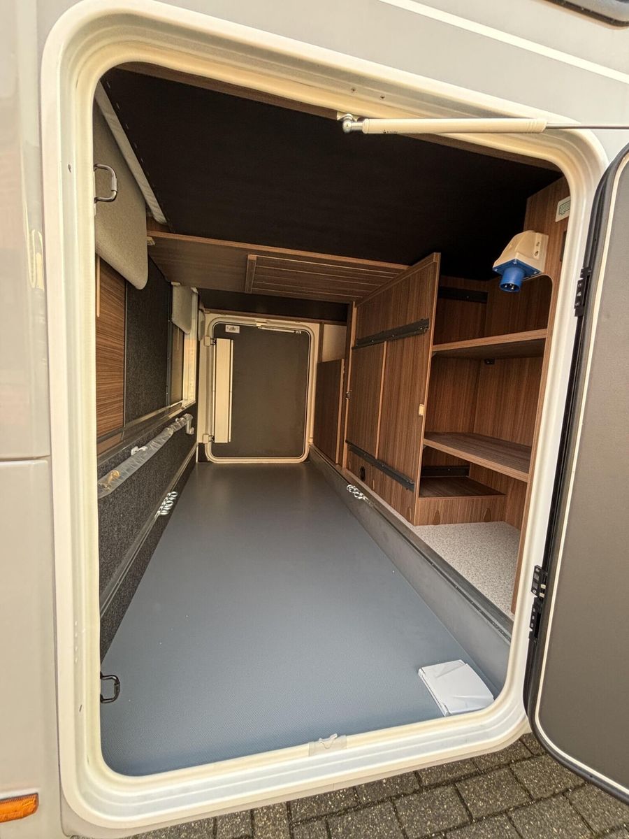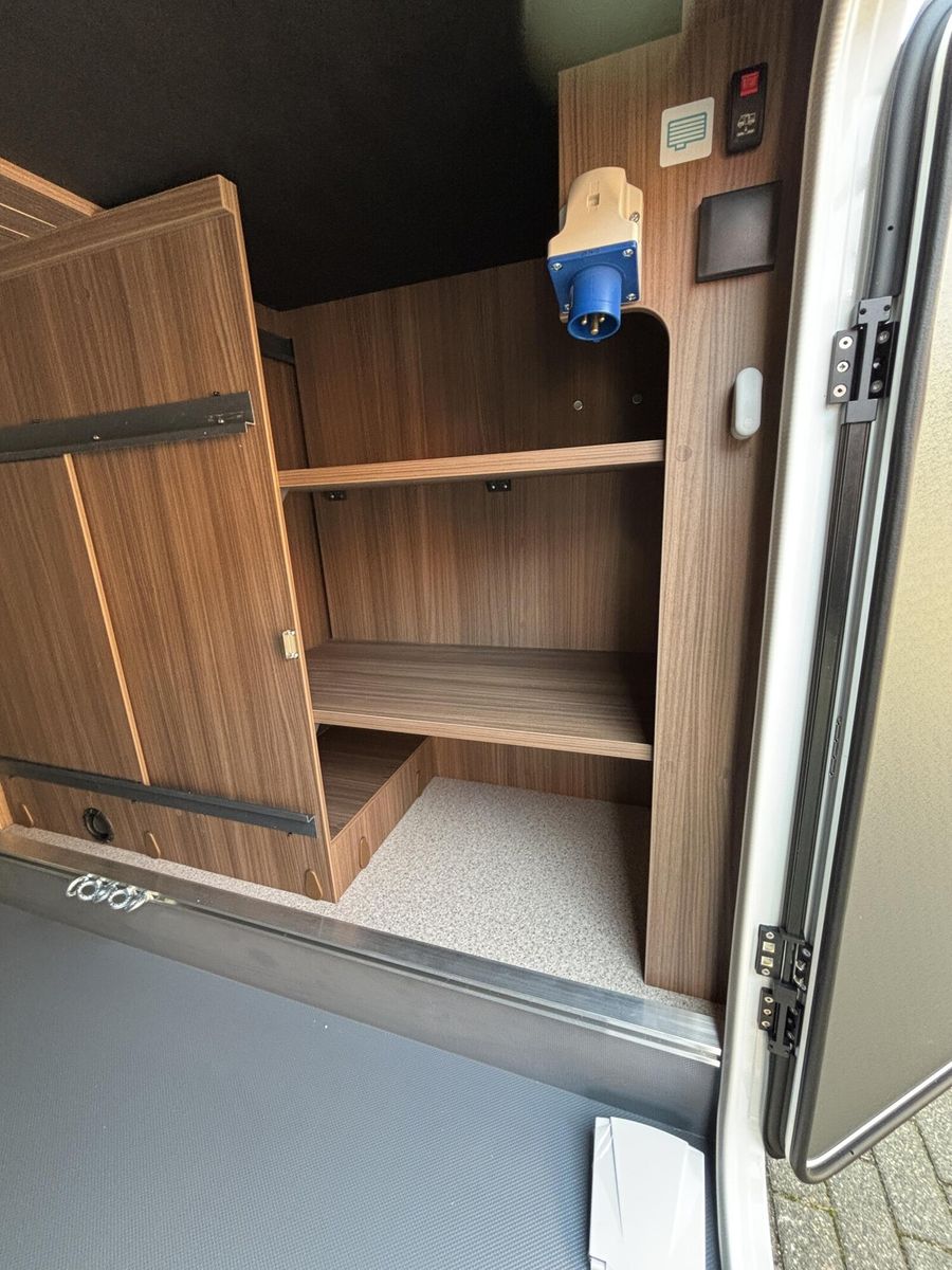 • * Chassis & CockpitSkid Plate schwarz glänzendTraktionskontrolleASR + ESP inkl. BerganfahrassistentZentralverriegelungElektrische FensterheberFahrerairbagDieselpartikelfilterKlimaanlage manuell (Fahrerhaus)BordcomputerABS + ESPAußenspiegel verbreitertAdBlue Tank 19 lNebelscheinwerferServolenkungHalogenscheinwerferElektronische WegfahrsperreMultifunktionslenkrad mit Bedienelement16" Aluminiumfelgen schwarz mit AllwetterreifenElektrische FeststellbremseArmaturentafel mit Applikationen (Techno Trim)Außenspiegel elektrisch verstell- und beheizbarScheinwerfer mit schwarzem RahmenTempomatLenkrad und Schaltknauf in LederausführungKraftstofftank 90 l DieselFahrerhausverdunklung (Plissees)BeifahrerairbagGetränkehalterFahrer- / Beifahrersitz drehbarSitzsockelverkleidung FahrerhausPannensetLenkrad höhenverstellbarHöhenverstellung Fahrer- / BeifahrersitzArmlehnen für Fahrer- und BeifahrersitzKomfortfahrerhaussitzbezügeRückfahrkamera inkl. Kabelverlegung ohne MonitorStoßfänger in WagenfarbeRückfahrkamera in 3ter BremsleuchteDritte BremsleuchteAußenausstattungHeckabsenkung für erhöhte Nutzlast 250 kgAufbautür 70 cm mit Abfallsammler, Fenster, Verdunklungsrollo und Zentralverriegelung inkl. niedrigen Coupe EinstiegVorbereitung SAT, Klimaanlage, Solar inkl. DachverstärkungRahmenfenster inkl. Verdunklungsrollo und InsektenschutzDachhaube 280x280mm inkl. Verdunklungsrollo und Insektenschutz im BadDachhaube Klarglas 400x400mm inkl. Verdunklungsrollo und Insektenschutz über der SitzgruppeExtra großes Panoramafenster inkl. Verdunklungsrollo über FahrerhausHeckgaragentür Fahrer- und Beifahrerseite mit Einhandbedienung inkl. ZentralverriegelungAußenfarbe Expedition GreyMarkise matt Schwarz 4,5 x 2,50m inkl. LED-StreifenDachhaube Klarglas 400x400mm inkl. Verdunklungsrollo und Insektenschutz über dem SchlafbereichInnenausstattungKlappbare Wäschestange im Toilettenraum/DuscheBettenumbau Einzelbett zu Doppelbett3 Schubkästen mit Vollauszug im Bett BereichGarderobe im EingangsbereichLounge L SitzgruppeSeparate Dusche durch RaumbadVerstellbare Rückenlehne im BettbereichBeleuchtete Heckwand im BettbereichModulare Premium Matratze 150mm inkl. Tellerfeder LattenrostPolster Cruiser Light StoneKleiderschrankinnenbeleuchtungInsektenschutztürMöbelbau und hinterlüftete Polster und Matratzen für optimale LuftzirkulationVerzurrschienen mit Verzurrösen in der HeckgarageKücheEinhängeleiste für optionales Zubehör (Inkl. 2 Haken)Kombi-Kochfeld mit 1 Induktion und 2 Gas KochfeldernEingelassenes Spülbecken mit schwarzer ArmaturSäulentisch Absenkbar mit verschiebbarer TischplatteKompressorkühlschrank 132 l mit EisfachSchublade mit BesteckeinsatzSchubladen mit SoftcloseAnti-Rutsch-Matten in Küchenunter- und HängeschrankWasserversorgungAbwassertank 98 lFrischwassertank isoliert und beheiztWarmwassermischbatterieKasetten-ToiletteDruckwasserpumpeFrischwassertank 100 lMultimediaRadiovorbereitung inkl. Lautsprecher Aktiv-Antenne DAB fähigElektro- und GasversorgungGasabsperrhahn gut zugänglich und zentral angeordnet230V Steckdose und Beleuchtung in der HeckgarageIndirekte Beleuchtung KüchenrückwandIndirekte Beleuchtung oberhalb der HängeschränkeCEE-Anschluss in Heckgarage für 230 V mit mit FI-Schalter und LadegerätGasflaschenkasten (1x 11kg)RauchmelderDeckenbelechtung (dimmbar)Gasregler 30 mbar mit Gasschlauch (mit länderspezifischem Adapter)LED-InnenbeleuchtungIndividuell verstellbare LED-LesespotsAußentür GaskastenLeistungsstarke, wartungsfreie AGM-Aufbaubatterie (95 Ah)Elektrischer Ladeautomat für Aufbau- und Fahrzeugbatterie 12 V / 18 A mit LadeboosterLMC Home mit 4 DisplayHeizungDiesel Heizung 6 kW Umluft mit 10 l Boiler und digitalen BedienteilLong Life Technologie12 Jahre Aufbau DichtheitsgarantieGFK-Bug, -Dach und -HeckUnterboden aus Hochleistungs XPS-Schaum und GFKSA_Pakete_InhalteIndirekte Beleuchtung KüchenrückwandCockpitElektrische FeststellbremseTraktionskontrolleTempomatMultifunktionslenkrad mit BedienelementElektro- und GasversorgungIndirekte Beleuc