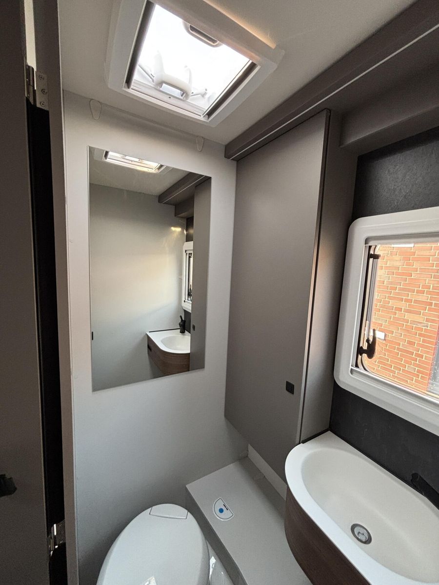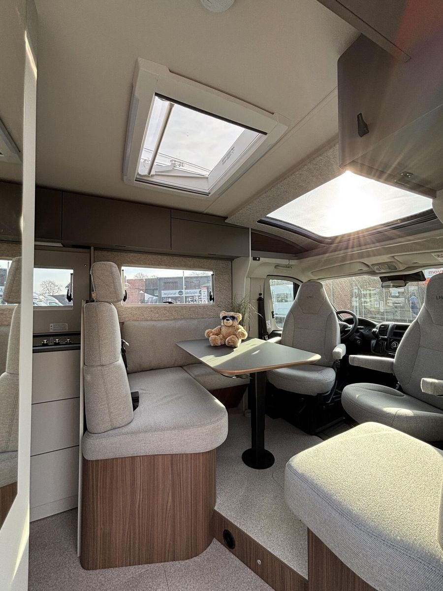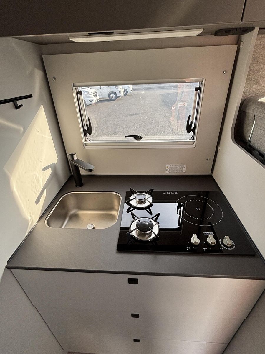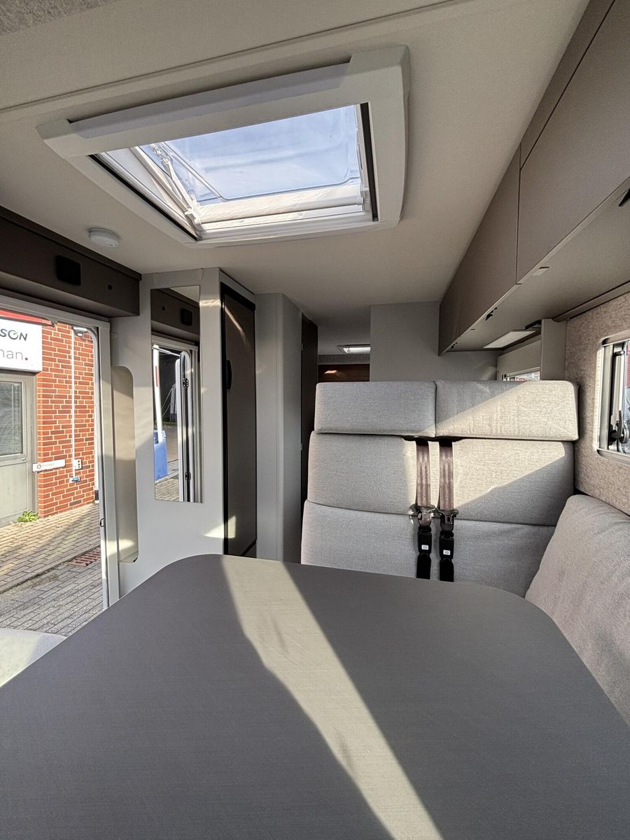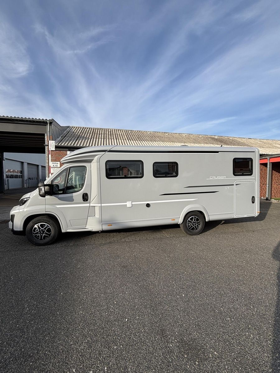 • * Chassis & CockpitSkid Plate schwarz glänzendTraktionskontrolleASR + ESP inkl. BerganfahrassistentZentralverriegelungElektrische FensterheberFahrerairbagDieselpartikelfilterKlimaanlage manuell (Fahrerhaus)BordcomputerABS + ESPAußenspiegel verbreitertAdBlue Tank 19 lNebelscheinwerferServolenkungHalogenscheinwerferElektronische WegfahrsperreMultifunktionslenkrad mit Bedienelement16" Aluminiumfelgen schwarz mit AllwetterreifenElektrische FeststellbremseArmaturentafel mit Applikationen (Techno Trim)Außenspiegel elektrisch verstell- und beheizbarScheinwerfer mit schwarzem RahmenTempomatLenkrad und Schaltknauf in LederausführungKraftstofftank 90 l DieselFahrerhausverdunklung (Plissees)BeifahrerairbagGetränkehalterFahrer- / Beifahrersitz drehbarSitzsockelverkleidung FahrerhausPannensetLenkrad höhenverstellbarHöhenverstellung Fahrer- / BeifahrersitzArmlehnen für Fahrer- und BeifahrersitzKomfortfahrerhaussitzbezügeRückfahrkamera inkl. Kabelverlegung ohne MonitorStoßfänger in WagenfarbeRückfahrkamera in 3ter BremsleuchteDritte BremsleuchteAußenausstattungHeckabsenkung für erhöhte Nutzlast 250 kgAufbautür 70 cm mit Abfallsammler, Fenster, Verdunklungsrollo und Zentralverriegelung inkl. niedrigen Coupe EinstiegVorbereitung SAT, Klimaanlage, Solar inkl. DachverstärkungRahmenfenster inkl. Verdunklungsrollo und InsektenschutzDachhaube 280x280mm inkl. Verdunklungsrollo und Insektenschutz im BadDachhaube Klarglas 400x400mm inkl. Verdunklungsrollo und Insektenschutz über der SitzgruppeExtra großes Panoramafenster inkl. Verdunklungsrollo über FahrerhausHeckgaragentür Fahrer- und Beifahrerseite mit Einhandbedienung inkl. ZentralverriegelungAußenfarbe Expedition GreyMarkise matt Schwarz 4,5 x 2,50m inkl. LED-StreifenDachhaube Klarglas 400x400mm inkl. Verdunklungsrollo und Insektenschutz über dem SchlafbereichInnenausstattungKlappbare Wäschestange im Toilettenraum/DuscheBettenumbau Einzelbett zu Doppelbett3 Schubkästen mit Vollauszug im Bett BereichGarderobe im EingangsbereichLounge L SitzgruppeSeparate Dusche durch RaumbadVerstellbare Rückenlehne im BettbereichBeleuchtete Heckwand im BettbereichModulare Premium Matratze 150mm inkl. Tellerfeder LattenrostPolster Cruiser Light StoneKleiderschrankinnenbeleuchtungInsektenschutztürMöbelbau und hinterlüftete Polster und Matratzen für optimale LuftzirkulationVerzurrschienen mit Verzurrösen in der HeckgarageKücheEinhängeleiste für optionales Zubehör (Inkl. 2 Haken)Kombi-Kochfeld mit 1 Induktion und 2 Gas KochfeldernEingelassenes Spülbecken mit schwarzer ArmaturSäulentisch Absenkbar mit verschiebbarer TischplatteKompressorkühlschrank 132 l mit EisfachSchublade mit BesteckeinsatzSchubladen mit SoftcloseAnti-Rutsch-Matten in Küchenunter- und HängeschrankWasserversorgungAbwassertank 98 lFrischwassertank isoliert und beheiztWarmwassermischbatterieKasetten-ToiletteDruckwasserpumpeFrischwassertank 100 lMultimediaRadiovorbereitung inkl. Lautsprecher Aktiv-Antenne DAB fähigElektro- und GasversorgungGasabsperrhahn gut zugänglich und zentral angeordnet230V Steckdose und Beleuchtung in der HeckgarageIndirekte Beleuchtung KüchenrückwandIndirekte Beleuchtung oberhalb der HängeschränkeCEE-Anschluss in Heckgarage für 230 V mit mit FI-Schalter und LadegerätGasflaschenkasten (1x 11kg)RauchmelderDeckenbelechtung (dimmbar)Gasregler 30 mbar mit Gasschlauch (mit länderspezifischem Adapter)LED-InnenbeleuchtungIndividuell verstellbare LED-LesespotsAußentür GaskastenLeistungsstarke, wartungsfreie AGM-Aufbaubatterie (95 Ah)Elektrischer Ladeautomat für Aufbau- und Fahrzeugbatterie 12 V / 18 A mit LadeboosterLMC Home mit 4 DisplayHeizungDiesel Heizung 6 kW Umluft mit 10 l Boiler und digitalen BedienteilLong Life Technologie12 Jahre Aufbau DichtheitsgarantieGFK-Bug, -Dach und -HeckUnterboden aus Hochleistungs XPS-Schaum und GFKSA_Pakete_InhalteIndirekte Beleuchtung KüchenrückwandCockpitElektrische FeststellbremseTraktionskontrolleTempomatMultifunktionslenkrad mit BedienelementElektro- und GasversorgungIndirekte Beleuc