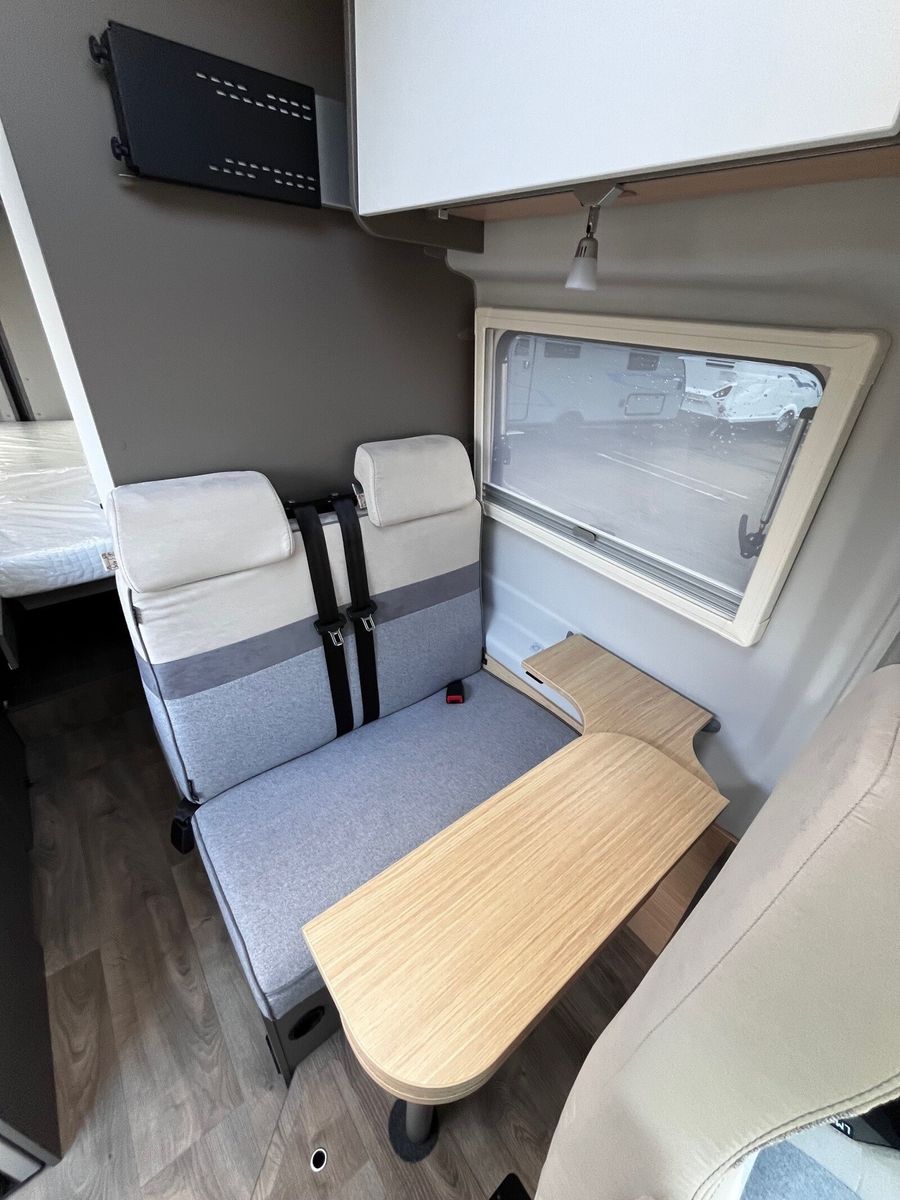 Modell 2025 Motor / Chassis: Ford Transit Leistung: 121 kW / 165 PS Getriebe: Automatik zul. Gesamtgewicht: 3500 kg Bett(en): Einzelbetten Polster: Granit Holzdekor: Serie