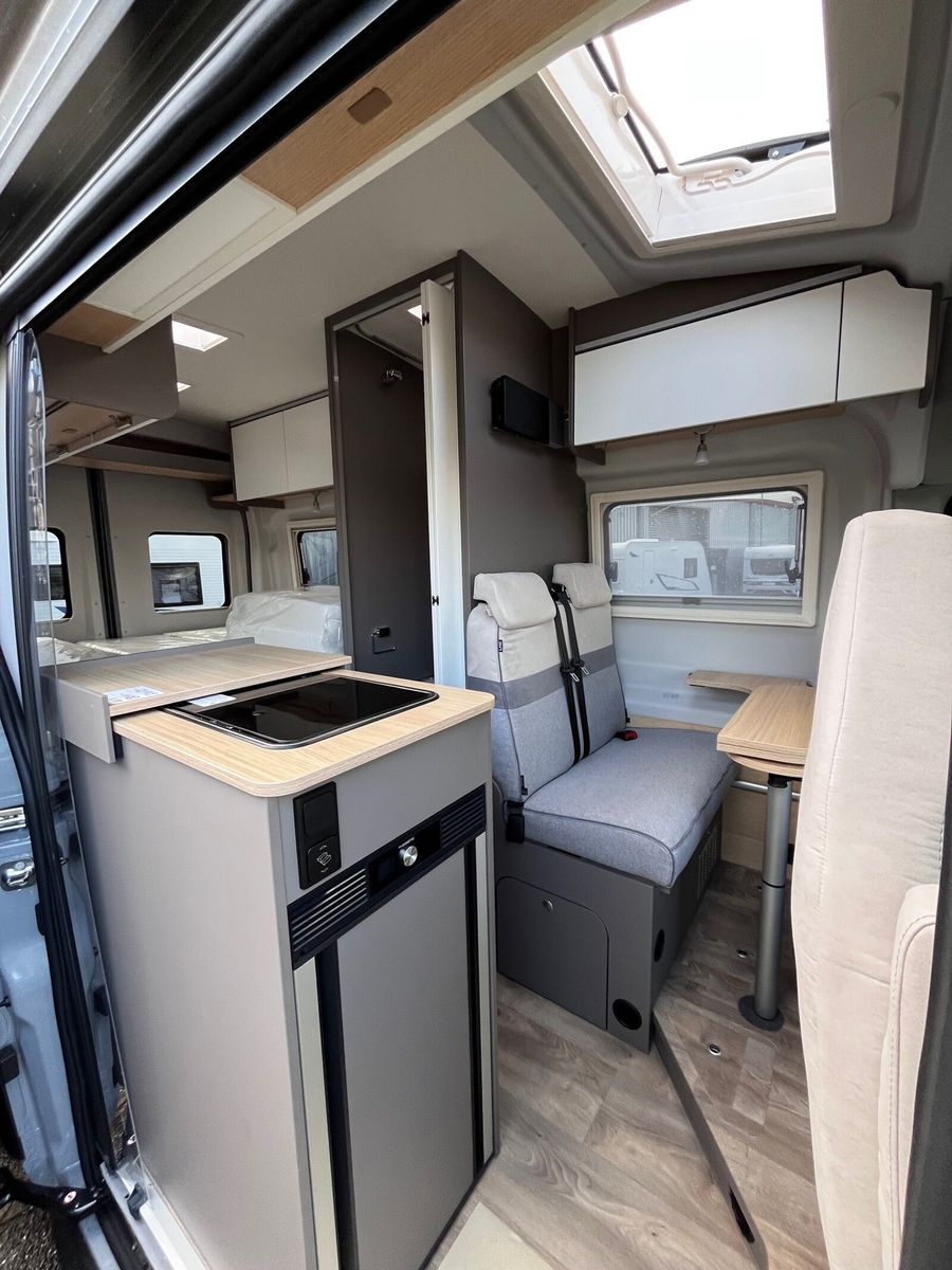 Chassis & Cockpit Chassisfarbe Weiß Komfortfahrerhaussitzbezüge Lenkrad höhenverstellbar Servolenkung 16" Stahlfelge mit Sommerreifen inkl. Radzierblenden ASR + ESP inkl. Berganfahrassistent Kraftstofftank 70 l Diesel Außenspiegel elektrisch verstellbar Multifunktionslenkrad mit Bedienelement Armlehnen für Fahrer- und Beifahrersitz AdBlue Tank 22 l Getränkehalter Lackierung Fahrerhaus/Serienbeklebung Dritte Bremsleuchte Fahrerhausverdunklung (Stoff) Pannenset Fahrer- / Beifahrersitz drehbar Höhenverstellung Fahrer- / Beifahrersitz ABS + ESPBordcomputer Dieselpartikelfilter Fahrerairbag Elektrische Fensterheber Elektrische Feststellbremse Traktionskontrolle Tempomat Beifahrerairbag MotorvarianteFord 96 kW (130 PS) Schalter - Start-Stopp-SystemAußenausstattung Rahmenfenster inkl. Verdunklungsrollo und Insektenschutz Privacy Glass Hecktüren Dachhaube 280x280mm inkl. Verdunklungsrollo und Insektenschutz im Bad Hecktüren mit Fenster Dachhaube Klarglas 280x280mm inkl. Verdunklungsrollo und Insektenschutz über dem Schlafbereich Dachhaube Klarglas 280x280mm inkl. Verdunklungsrollo und Insektenschutz über der SitzgruppeSchlafraumerweiterung für 2m Liegefläche Innenausstattung Sitzgruppenpodest mit integriertem Staufach Großzügige Stauräume und Ablagemöglichkeiten Ergonomisch geformte Polster für mehr Sitzkomfort Heckbett mit Teilfederleistenrahmen Große Ablage vor den Hecktüren über dem Bett Schottwand inkl. Aufstiegstritt Kopfstützen in MittelsitzgruppeIsofix für 2 Plätze Polster Natura Kaltschaummatratzen 110mm in Festbetten inkl. Federleistenrahmen Küche2-Flammen Gaskocher mit Piezozündung und Glasabdeckung Einhängeleiste für optionales Zuebhör (Inkl. 2 Haken) Kompressorkühlschrank 69 l mit beidseitiger Öffnungsmöglichkeit und Eisfach Spüle mit Schneidbrett als Abdeckung Schubladen mit Softclose Schublade mit Besteckeinsatz Wasserversorgung Kassetten-Toilette Warmwassermischbatterie Modernes Waschbecken in Bad Wassertank 100 l mit Einfüllstutzen, Abwassertank 90 l Multimedia12 Display inkl. Radio und Android Auto bzw. Apple Car Play Elektro- und Gasversorgung Leistungsstarke, wartungsfreie AGM-Aufbaubatterie (95 Ah) Stromeinspeisung Seitenwand Individuell verstellbare LED-Lesespots LED-Innenbeleuchtung Gasflaschenkasten (für 2x 11 kg)Gasregler 30 mbar mit Gasschlauch (mit länderspezifischem Adapter) Versenkte LED-Spots im Badezimmer Bord-Control-Panel mit Angabe aller Füllstände und Batteriekapazitäten Elektrischer Ladeautomat für Aufbau- und Fahrzeugbatterie 12 V / 18 A mit Ladebooster Gasabsperrhähne gut zugänglich und zentral angeordnet Steckdosen 3x 230 V, 1x Doppel-USB, 1x 12 V (Fahrerhaus/Cockpit)CEE-Außenanschluss für 230 V mit mit FI-Schalter und Ladegerät Rauchmelder Heizung Gas Heizung 4 kW Umluft mit 10 l Boiler und manuellen Bedienteil Long Life Technologie12 Jahre Aufbau Dichtheitsgarantie Pakete Inhalte Beifahrerairbag Höhenverstellung Fahrer- / Beifahrersitz 12 Display inkl. Radio und Android Auto bzw. Apple Car PlayCockpit Multifunktionslenkrad mit Bedienelement Tempomat Traktionskontrolle Elektrische Feststellbremse Fahrzeugausstattung Beifahrerairbag Fenster & TürenSchlafraumerweiterung für 2m LiegeflächeRahmenfenster inkl. Verdunklungsrollo und Insektenschutz Weitere Innenausstattungen Isofix für 2 Plätze Kopfstützen in Mittelsitzgruppe