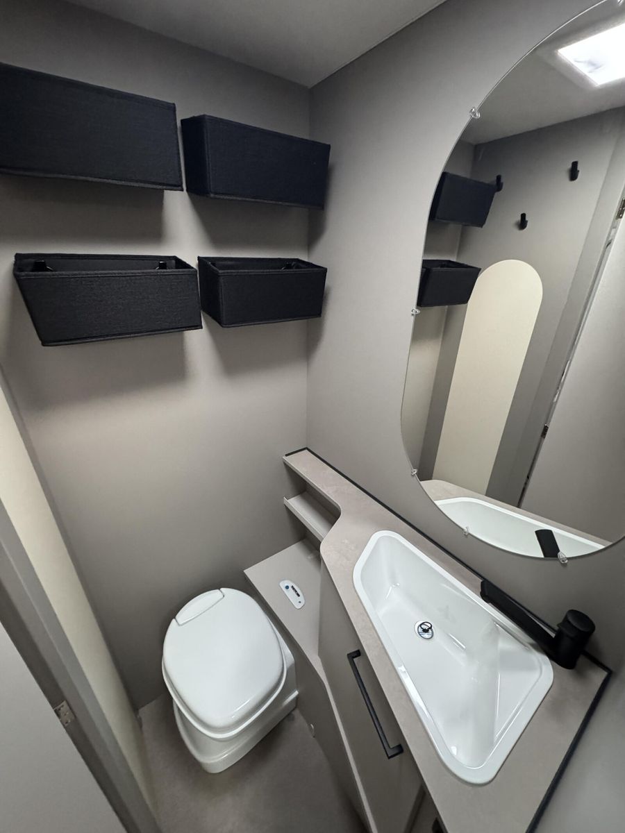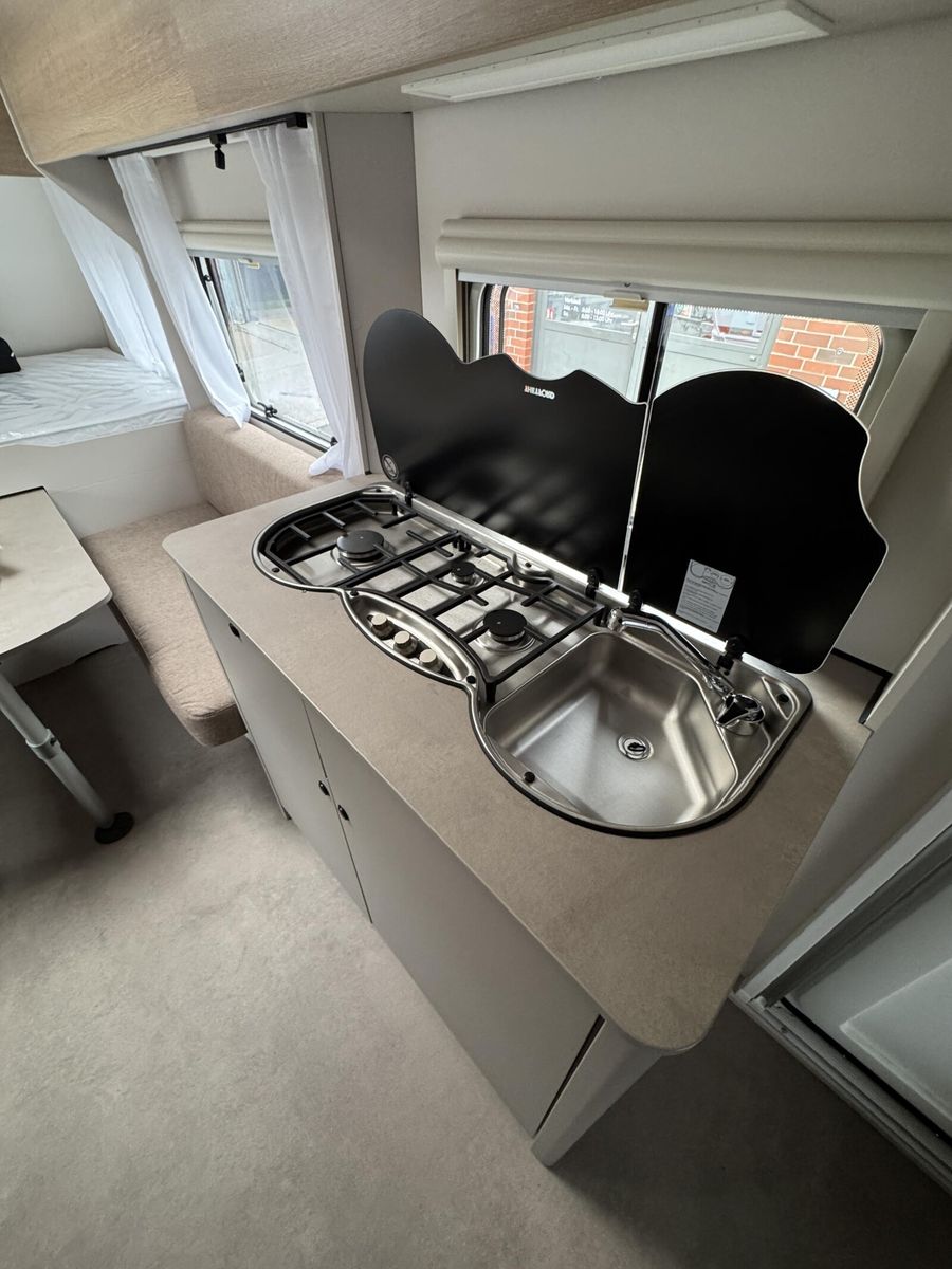 • Sassino Paket (Abwassertank 25 l rollbar, Reserveradhalterung im Flaschenkasten, Insektenschutztür in Aufbautür, Therme für Warmwasserversorgung 5 l (Warmwassermischbatterie enthalten), Umluftanlage für Gasheizung, Dachhaube Klarglas 700 x 500 mm inkl. Verdunklungsrollo und Insektenschutz, TV-Vorbereitung (1x12V Steckdose, 2x Antennenkabel SAT/TV), Zusätzliche Beleuchtung (Stromschiene inkl. Spots), Vorbereitung für Klimaanlage inkl. Dachverstärkung, 2x USB-Steckdose für Stromschiene, Stützrad mit Stützlastanzeige, Frischwassertank 44 l mit Außeneinfüllstützen, Tellerfüße für Kurbelstützen)
